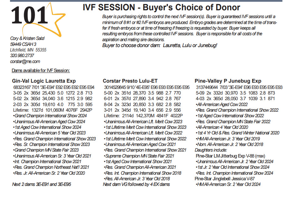 Buyer to choose donor dam: Lauretta, Lulu or Junebug!