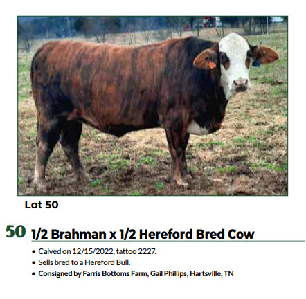 1/2 Brahman x 1/2 Hereford Bred Cow