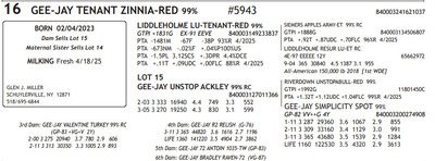 BORN 09/23/2019 Family Members Sell Lots 19,20 MILKING 133 LBS Fresh 12/7/24 VG-85 VV++V 2Y 2-00 3 293 26270 3.5 921 2.8 748 3-00 3 345 37170 2.7 989 2.8 1029 4-01 3 318 35120 3.0 1037 2.8 966 BRED 2/7/25 TO BOAZ PRINGLE-RED-ET 3242250635