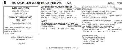BORN 12/22/2022 From 4E-95 Sprinkles MILKING 109 LBS Fresh 3/3/25 SCC 10,000 BRED 5/5/25 TO BLONDIN DETECTIVE 120781841C