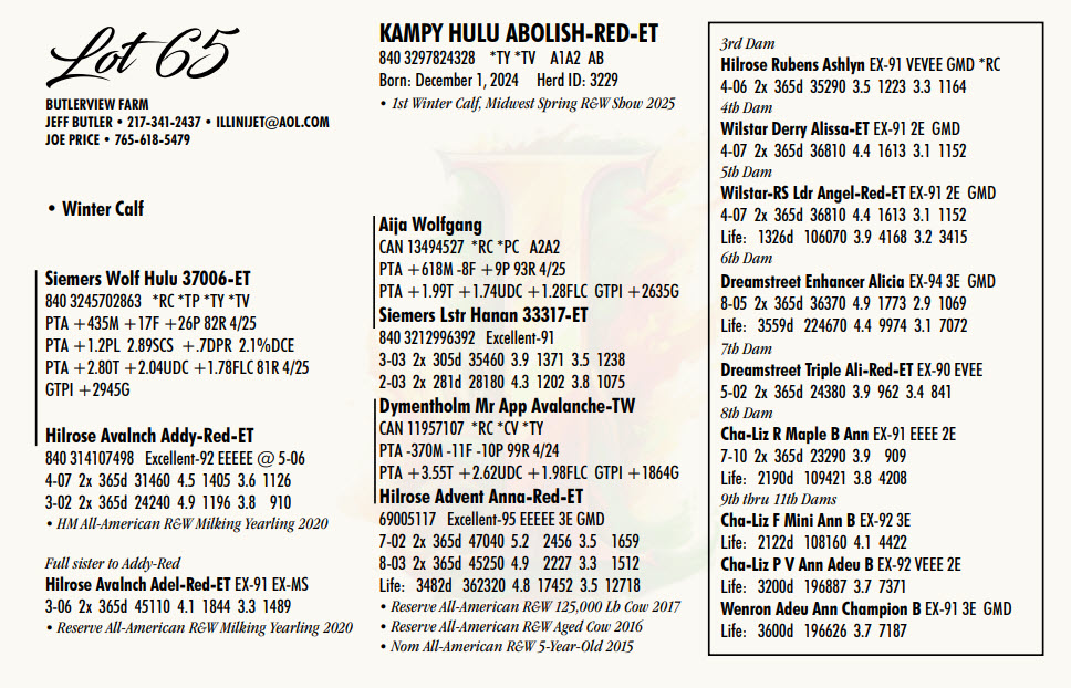 BUTLERVIEW FARM 1st Winter Calf, Midwest Spring R&W Show 2025