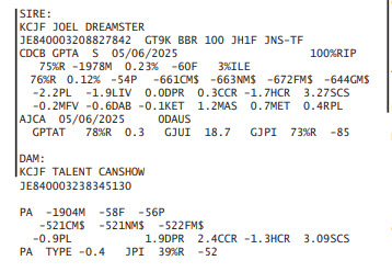 BRED: 10/22/2024 DUE: 07/28/2025 TO KILGUS LOLALA GLADIATOR