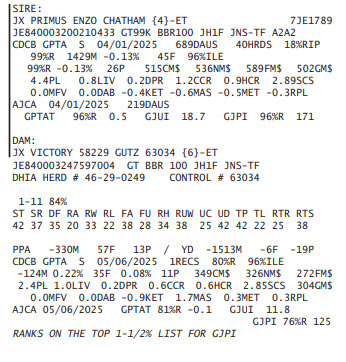 RANKS ON THE TOP GJPI HEIFER LIST