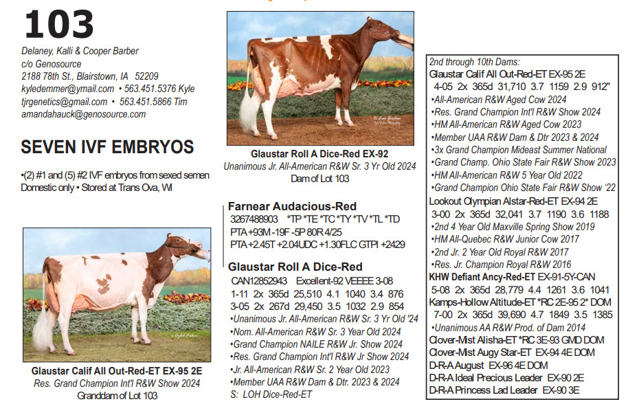 (2) #1 and (5) #2 IVF embryos from sexed semen