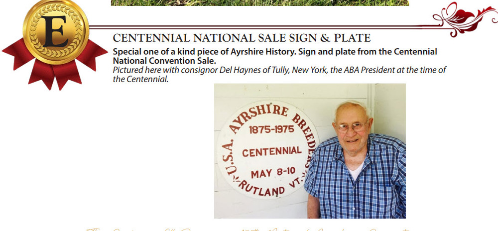 Special one of a kind piece of Ayrshire History. Sign and plate from the Centennial