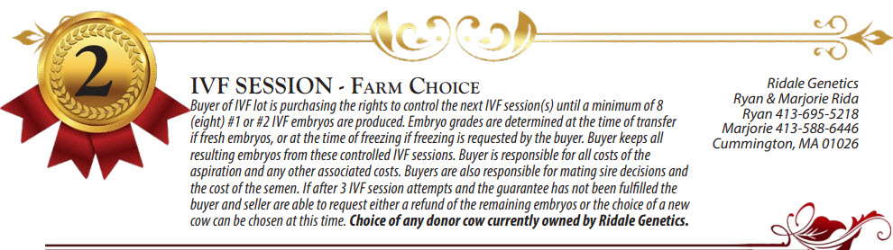 cow can be chosen at this time. Choice of any donor cow currently owned by Ridale Genetics.