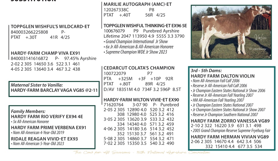 Direct maternal decendant of the World Famous Hardy Farm Miss Lancaster