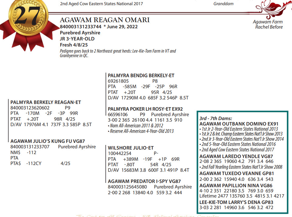 Pedigree goes back to 2 Northeast great herds: Lee-Kie-Tom Farm in VT and