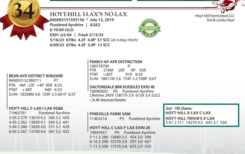 5/16/25 67lbs 4.2F 4.0P 57 SCC (at 4 days fresh)