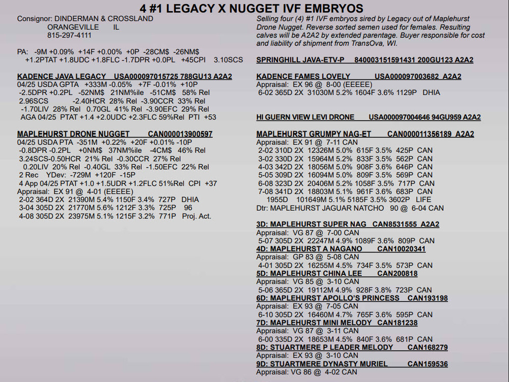 Selling four (4) #1 IVF embryos sired by Legacy out of Maplehurst