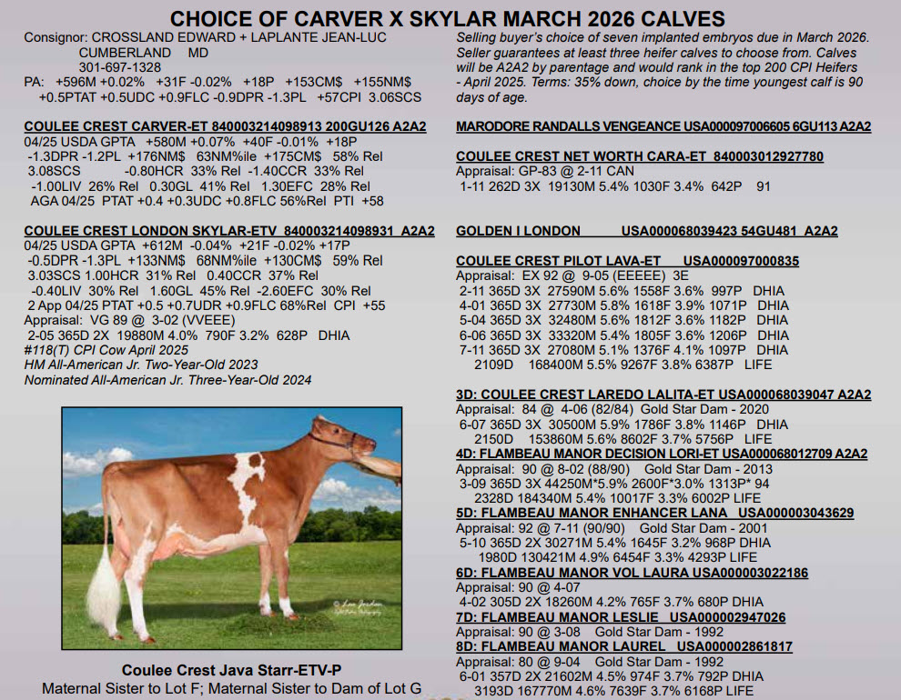 Selling buyer’s choice of seven implanted embryos due in March 2026.