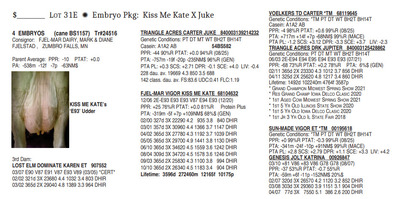 4 EMBRYOS (cane BS1157) Tr#24516 Consignor: FJEL-MAR DAIRY, MARK & DIANE FJELSTAD , ZUMBRO FALLS, MN Parent Average: PPR: -10 PTAT: +0.0 PA: -538m -12f -7p -63NM$