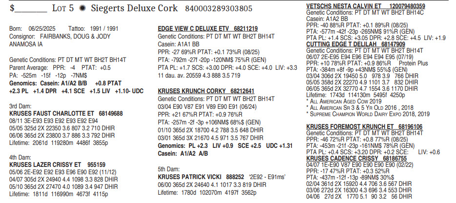 Genomics: Casein: A1/A2 B/B +0.8 PTAT