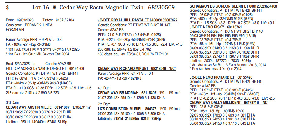 Bred 5/30/2025 to: Casein: A2A2 BB