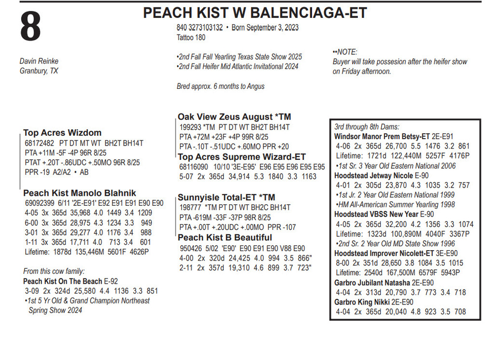 2nd Fall Fall Yearling Texas State Show 2025 2nd Fall Heifer Mid Atlantic Invitational 2024