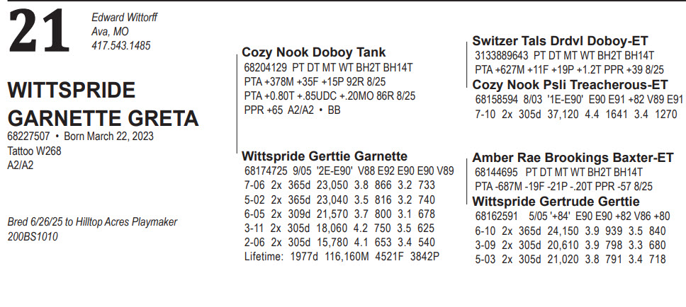 Bred 6/26/25 to Hilltop Acres Playmaker