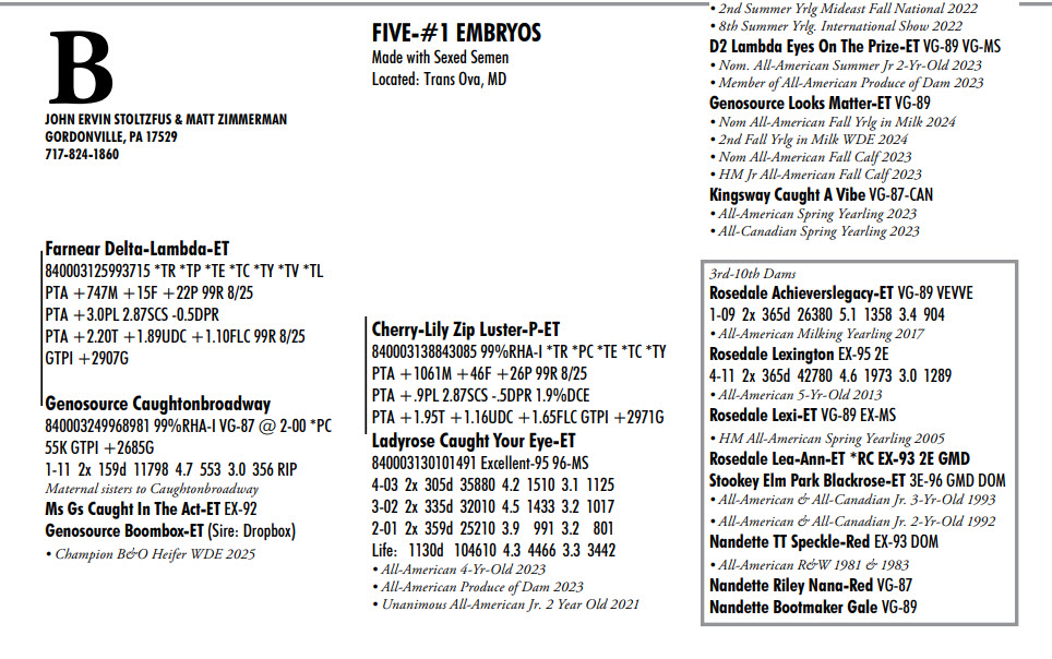 Made with Sexed Semen Located: Trans Ova, MD