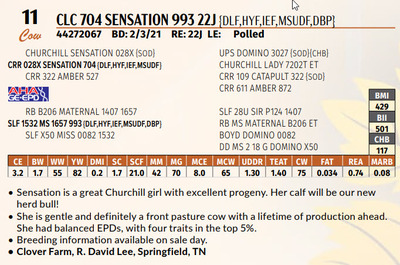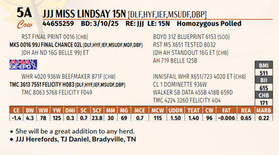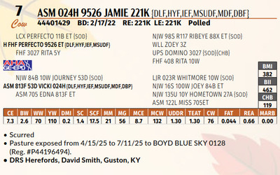 She is gentle and definitely a front pasture cow with a lifetime of production ahead. She had balanced EPDs, with four traits in the top 5%.