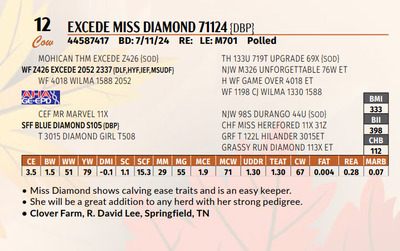 Miss Diamond shows calving ease traits and is an easy keeper.