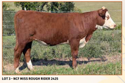 Sells with Lot 1A, bull calf born 9/28/25, sired by KRM 9160 FOLLOW ME 8G L35 ET (Reg. #P44460921), the 2024 NAILE Champion Hereford Bull. This calf is bred to have extra thickness with strong maternal genetics.