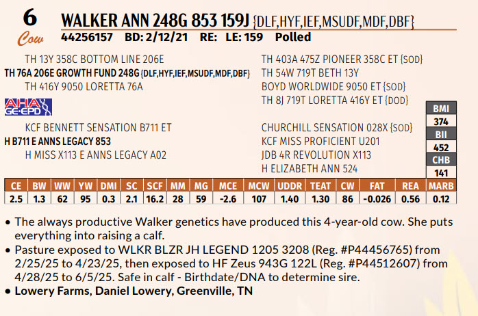 The always productive Walker genetics have produced this 4-year-old cow. She puts