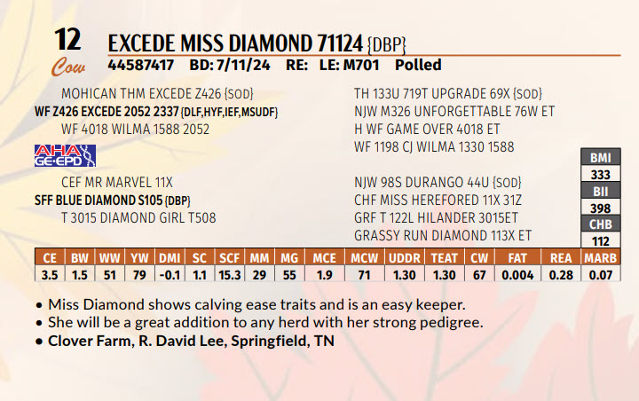 Miss Diamond shows calving ease traits and is an easy keeper.