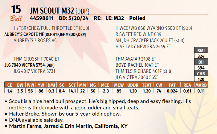 Scout is a nice herd bull prospect. He’s big hipped, deep and easy fleshing. His