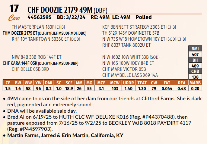 49M came to us on the side of her dam from our friends at Clifford Farms. She is dark