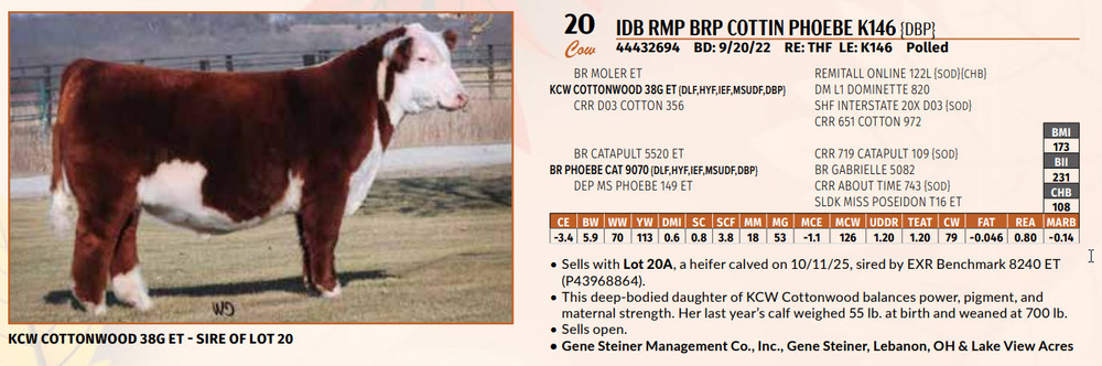 Sells with Lot 20A, a heifer calved on 10/11/25, sired by EXR Benchmark 8240 ET