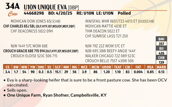 Eva is a sharp-looking heifer that is sure to be a front pasture cow. She has been OCV