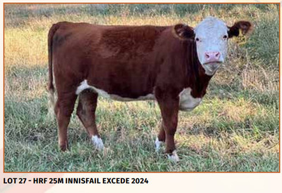 A front pasture heifer for sure. From the Innisfail cow line and Excede on the top. This is a heifer you can start a herd with.