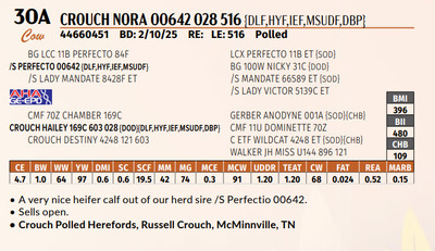Another great offering from CPHF. She should continue to be very productive for any herd.