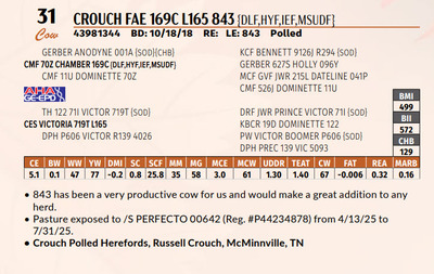 843 has been a very productive cow for us and would make a great addition to any herd.