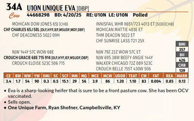 great all-around maternal traits. Will make an excellent replacement