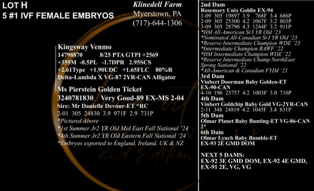 Rosemary Unix Goldie EX-94 5 #1 IVF FEMALE EMBRYOS Myerstown, PA 1-09 305 19897 3.9 768F 3.4 686P