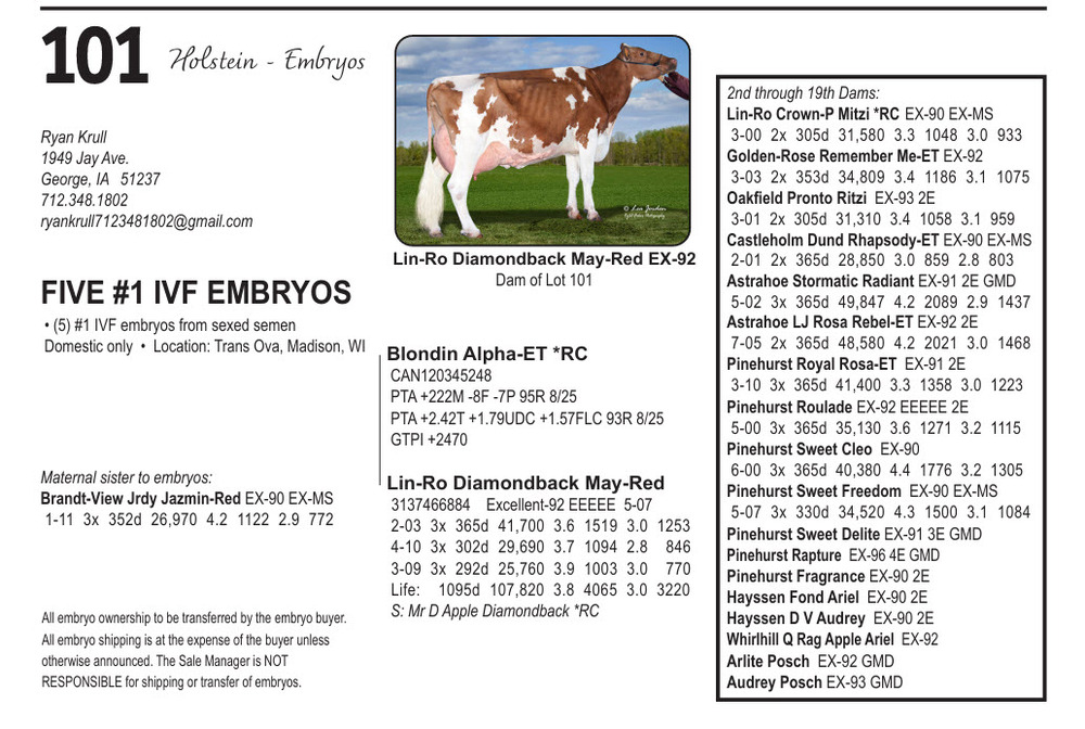 ** Any shipping of semen or embryos is the financial cost of the buyer. All lots (and shipping) must be paid before shipping occurs. All arrangements for shipping or delivery MUST be coordinated with Jason Robinson 740-463-1181.