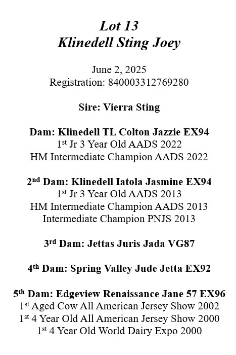 2nd Dam: Klinedell Iatola Jasmine EX94