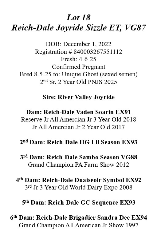 Bred 8-5-25 to: Unique Ghost (sexed semen)