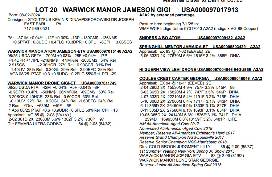 Consignor: STOLTZFUS KEVIN & DINA+PISKOROWSKI DR JOSEPH