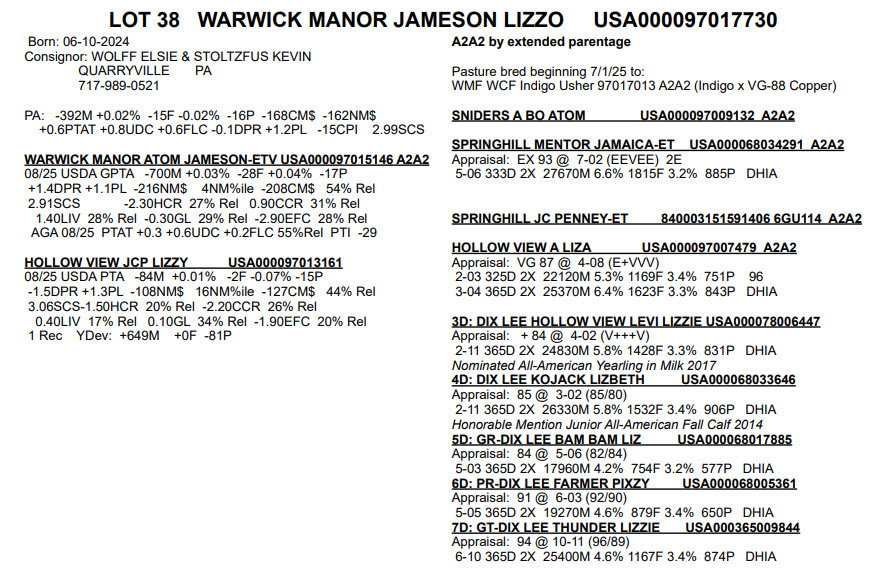 Consignor: WOLFF ELSIE & STOLTZFUS KEVIN