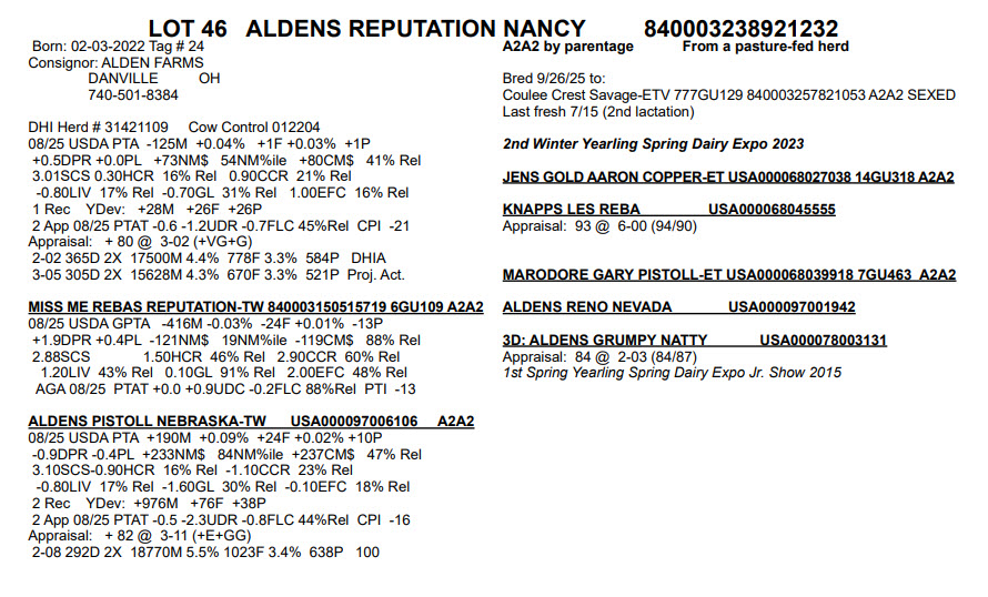 Consignor: ALDEN FARMS