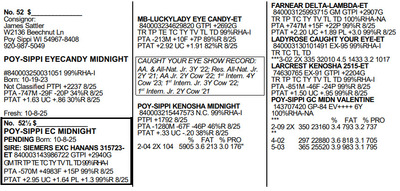 The BARRON FALL SALE 2025 120 N. 3rd Street, Barron WI, 54812 Great offering of genetics... Contact Agent: Aaron Ray Tompkins 336-363-4639 Catalog | Terms of Auction Download CATALOG Download ADDED LOTS PAGE 1 Download ADDED LOTS PAGE 2 Download ADDED LOTS PAGE 3 Catalog | Terms Download CATALOG Download ADDED LOTS PAGE 1 Download ADDED LOTS PAGE 2 Download ADDED LOTS PAGE 3 All Items (132) Cattle (102) Embryos (12) Semen (18) Categories All Items (132) Cattle (102) Embryos (12) Semen (18) Search Item #: Keyword: Search Catalog Item #: Keyword: 20 items per page 50 items per page 100 items per page Go to page #: 2 , 3 , 4 , 5 , 6 , 7 #50 – POY-SIPPI CADILLAC EVE #840003215447595 99%RHA-I Born: 6-11-23 Not Classified PTPI +2386 8/25 PTA +105M -7F -2P 35%R 8/25 PTAT +1.05 UC +.33 33%R 8/25 % FAT % PRO Fresh: 9-8-25 Location: 120 N. 3rd Street, Barron WI, 54812 Contact Agent: Aaron Ray Tompkins 336-363-4639 More Info / Bid Now Track this Item Sold High Bid: $3,250.00 – #1070 #50 – POY-SIPPI CADILLAC EVE Sold High Bid: $3,250 More Details More Info / Bid Track Item #840003215447595 99%RHA-I Born: 6-11-23 Not Classified PTPI +2386 8/25 PTA +105M -7F -2P 35%R 8/25 PTAT +1.05 UC +.33 33%R 8/25 % FAT % PRO Fresh: 9-8-25 Location: 120 N. 3rd Street, Barron WI, 54812 Contact Agent: Aaron Ray Tompkins 336-363-4639 #51 – POY-SIPPI KING ROYAL SW #840003215447592 99%RHA-I Born: 10-20-22 GP-83 ++++ 2Y PTPI +2200 8/25 PTA -638M -11F -13P 35%R 8/25 PTAT +.34 UC -.61 50%R 8/25 *** % FAT % PRO 2-06 2X 126 10281 4.5 460 3.2 324 (inc)” SCC: 31 Fresh: 4-23-25 Location: 120 N. 3rd Street, Barron WI, 54812 Contact Agent: Aaron Ray Tompkins 336-363-4639 More Info / Bid Now Track this Item Sold High Bid: $3,000.00 – #79 #51 – POY-SIPPI KING ROYAL SW Sold High Bid: $3,000 More Details More Info / Bid Track Item #840003215447592 99%RHA-I Born: 10-20-22 GP-83 ++++ 2Y PTPI +2200 8/25 PTA -638M -11F -13P 35%R 8/25 PTAT +.34 UC -.61 50%R 8/25 *** % FAT % PRO 2-06 2X 126 10281 4.5 460 3.2 324 (inc)” SCC: 31 Fresh: 4-23-25 Location: 120 N. 3rd Street, Barron WI, 54812 Contact Agent: Aaron Ray Tompkins 336-363-4639 #52 – POY-SIPPI EYECANDY MIDNIGHT #840003250031051 99%RHA-I Born: 10-19-23 Not Classified PTPI +2237 8/25 PTA -747M -29F -20P 34%R 8/25 PTAT +1.63 UC +.86 30%R 8/25 Fresh: 10-8-25 Location: 120 N. 3rd Street, Barron WI, 54812 Contact Agent: Aaron Ray Tompkins 336-363-4639 More Info / Bid Now Track this Item No Bids Starting at $1,500.00 Login to Bid #52 – POY-SIPPI EYECANDY MIDNIGHT Starting at $1,500.00 Login to Bid More Details More Info / Bid Track Item #840003250031051 99%RHA-I Born: 10-19-23 Not Classified PTPI +2237 8/25 PTA -747M -29F -20P 34%R 8/25 PTAT +1.63 UC +.86 30%R 8/25 Fresh: 10-8-25 Location: 120 N. 3rd Street, Barron WI, 54812 Contact Agent: Aaron Ray Tompkins 336-363-4639 #52.5 – POY-SIPPI EC MIDNIGHT PENDING Born: 10-8-25 Location: 120 N. 3rd Street, Barron WI, 54812 Contact Agent: Aaron Ray Tompkins 336-363-4639 More Info / Bid Now Track this Item Sold High Bid: $1,750.00 – #88 #52.5 – POY-SIPPI EC MIDNIGHT Sold High Bid: $1,750 More Details More Info / Bid Track Item PENDING Born: 10-8-25 Location: 120 N. 3rd Street, Barron WI, 54812 Contact Agent: Aaron Ray Tompkins 336-363-4639 #53 – MILKINAIRE ALT AIR ONE-RED #840003288240847 99%RHA-I Born: 11-01-24 GTPI +2151G 8/25 PTA -994M -37F -30P 81%R 8/25 PTAT +2.55 UC +1.57 81%R 8/25 Location: 120 N. 3rd Street, Barron WI, 54812 Contact Agent: Aaron Ray Tompkins 336-363-4639 More Info / Bid Now Track this Item Sold High Bid: $2,300.00 – #28 #53 – MILKINAIRE ALT AIR ONE-RED Sold High Bid: $2,300 More Details More Info / Bid Track Item #840003288240847 99%RHA-I Born: 11-01-24 GTPI +2151G 8/25 PTA -994M -37F -30P 81%R 8/25 PTAT +2.55 UC +1.57 81%R 8/25 Location: 120 N. 3rd Street, Barron WI, 54812 Contact Agent: Aaron Ray Tompkins 336-363-4639 #54 – ALBE-MAK SELECT JUPITER #840003227138874 96%RHA-I Born: 3-01-23 Not Classified PTPI +2298 8/25 PTA -1069M -20F -24P 34%R 8/25 PTAT +1.89 UC +1.13 38%R 8/25 % FAT % PRO 2-04 2X 55 91#/day 3.7%F 2.7%P Fresh: 7-11-25 Bred: 9-25-25 to Trent-Way Hayk Hard Rock #840003261835778 Location: 120 N. 3rd Street, Barron WI, 54812 Contact Agent: Aaron Ray Tompkins 336-363-4639 More Info / Bid Now Track this Item Sold High Bid: $2,750.00 – #18 #54 – ALBE-MAK SELECT JUPITER Sold High Bid: $2,750 More Details More Info / Bid Track Item #840003227138874 96%RHA-I Born: 3-01-23 Not Classified PTPI +2298 8/25 PTA -1069M -20F -24P 34%R 8/25 PTAT +1.89 UC +1.13 38%R 8/25 % FAT % PRO 2-04 2X 55 91#/day 3.7%F 2.7%P Fresh: 7-11-25 Bred: 9-25-25 to Trent-Way Hayk Hard Rock #840003261835778 Location: 120 N. 3rd Street, Barron WI, 54812 Contact Agent: Aaron Ray Tompkins 336-363-4639 #55 – FRIESIAN-KNOLL MAX WESTMAX #840003238170165 99%RHA-I Born: 2-23-21 VG-87 VVEVV 4Y CTPI +2010 8/25 PTA -1236M -27F -28P 43%R 8/25 PTAT +1.18 UC +.04 51%R 8/25 *** % FAT % PRO 2-04 2X 305 14350 5.0 717 3.7 531 365 17180 5.0 865 3.7 633 Sells fresh, Due: 10-12-25 Location: 120 N. 3rd Street, Barron WI, 54812 Contact Agent: Aaron Ray Tompkins 336-363-4639 More Info / Bid Now Track this Item Sold High Bid: $3,500.00 – #25 #55 – FRIESIAN-KNOLL MAX WESTMAX Sold High Bid: $3,500 More Details More Info / Bid Track Item #840003238170165 99%RHA-I Born: 2-23-21 VG-87 VVEVV 4Y CTPI +2010 8/25 PTA -1236M -27F -28P 43%R 8/25 PTAT +1.18 UC +.04 51%R 8/25 *** % FAT % PRO 2-04 2X 305 14350 5.0 717 3.7 531 365 17180 5.0 865 3.7 633 Sells fresh, Due: 10-12-25 Location: 120 N. 3rd Street, Barron WI, 54812 Contact Agent: Aaron Ray Tompkins 336-363-4639 #56 – WELSH-EDGE GAMECHANGE RETRO #840003259989936 99%RHA-I Born: 10-08-23 Not Classified PTPI +2163 8/25 PTA -557M -28F -26P 34%R 8/25 PTAT +.94 UC +.46 34%R 8/25 *** % FAT % PRO Fresh: 9-6-25 Location: 120 N. 3rd Street, Barron WI, 54812 Contact Agent: Aaron Ray Tompkins 336-363-4639 More Info / Bid Now Track this Item Sold High Bid: $4,800.00 – #19 #56 – WELSH-EDGE GAM