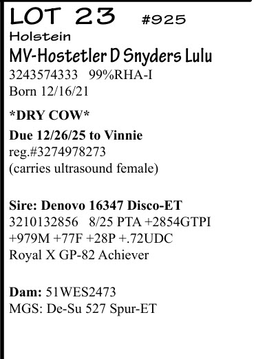 Hostetler Dairy Dispersal and Kish Monthly Dairy Sale
