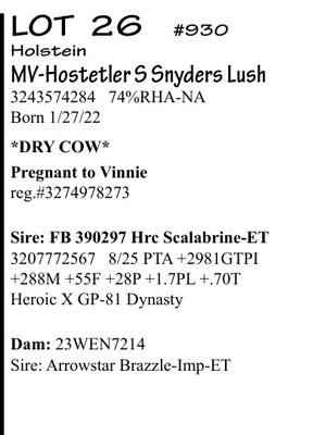 Hostetler Dairy Dispersal and Kish Monthly Dairy Sale