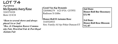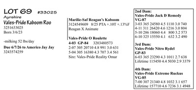 Offering the Genetic Leaders of the Present & Future for Type, Production, & Components! Many sell from World famous All-Am show winning families! No minimums! No reserves!