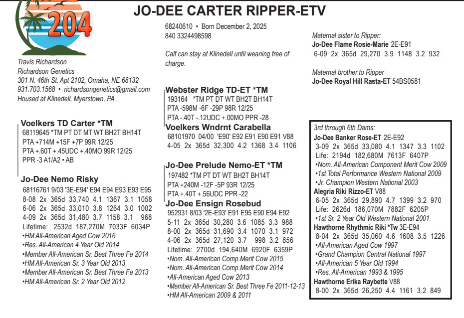 Calf can stay at Klinedell until weaning free of charge.