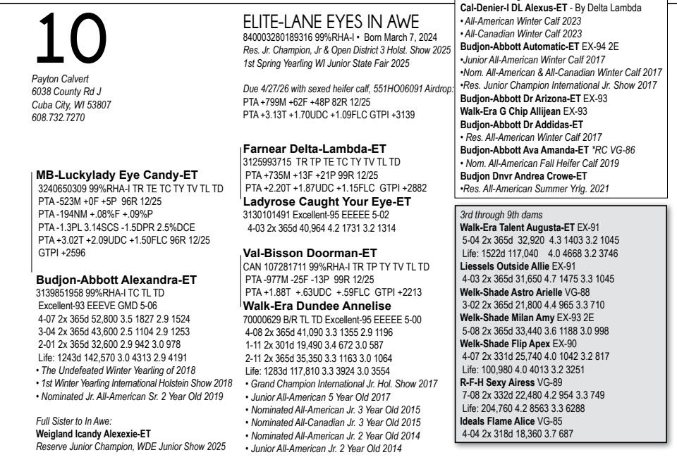 1st Spring Yearling WI Junior State Fair 2025 Due 4/27/26 with sexed heifer calf, 551HO06091 Airdrop: PTA +799M +62F +48P 82R 12/25 PTA +3.13T +1.70UDC +1.09FLC GTPI +3139