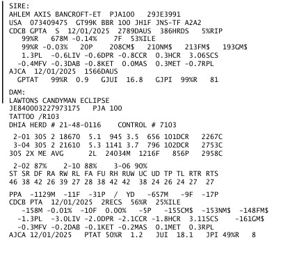 BRED: 11/05/2025 DUE: 08/11/2026 TO AVONLEA COOKIE CUTTER-ET PJA100 54JE960