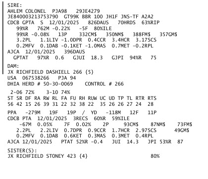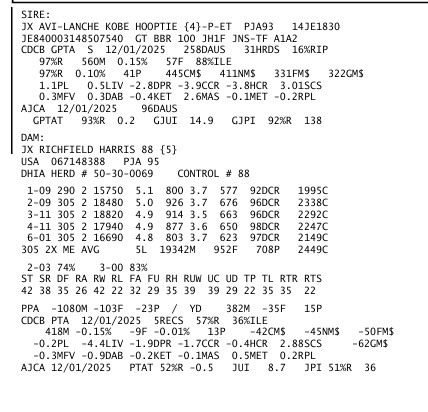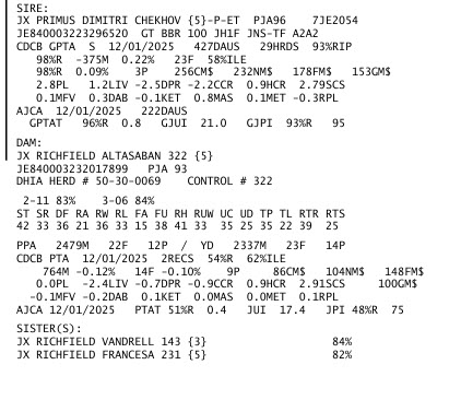 BRED: 10/24/2025 DUE: 07/30/2026 TO AVI-LANCHE SLOVENKA-ET PJA97 29JE4549