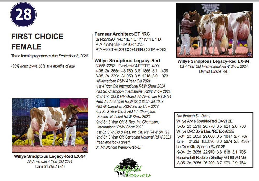 35% down pymt, 65% at 4 months of age
